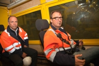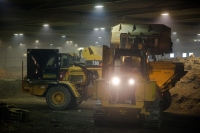 Auch wenn es zugeht, wie auf einem fremden, lebensfeindlichen Planeten, den die Menscheit bewohnbar machen will - dieser entstellte Flecken Erde ist nicht Lichtjahre entfernt, sondern er befindet sich mitten in Westeuropa, im Sauberland Schweiz. ![]() Wie auf einem anderen Planeten: Der Rückbau der Sondermülldeponie Kölliken in der Schweiz. (c) M.Billig Zu beiden Seiten der Autobahn A1 steigt das Schweizer Mittelland an. Der Blick reicht bis zu der Stelle, wo Wiesen und Wälder in den Himmel übergehen. Bei Kölliken-Oberdorf kreuzen in südlicher Richtung plötzlich weiße Streben das Sichtfeld. Sie schlagen hohe Bögen. Mit ihrer Spannweite von bis zu 175 Metern könnten sich die gut zwei Dutzend Stahlträger über mehrere Fußballfelder strecken. Tatsächlich biegt sich das Gerüst über ein flaches Gebäude, das sich großflächig an einen grünen Hang schmiegt. Das ebene Dach deckt mehrere Zehntausend Quadratmeter ab. Es ist an schlanken Stahlseilen aufgehängt, die von den Streben straff nach unten führen. ![]() Von außen hui: Die Halle schmiegt sich an den Hang. Das Tragwerk des Daches spannt sich darüber. (c) M.B. Fass für Fass, Sack für Sack und Haufen für Haufen wird die gefährliche Altlast seit dem Jahr 2007 zurückgebaut. Es ist ein seiner riesigen Dimension weltweit einzigartiges Projekt. Um Mensch und Natur zu schützen, haben Ingenieure den Rückbau unter der Halle versteckt. Umweltsünde mitten im Wohngebiet Was drinnen vor sich geht, davon bekommen die Anwohner draußen kaum etwas mit. Ihre Häuser stehen in direkter Nachbarschaft. Doch kein Laut dringt durch den Stahlbeton der Deponie. Im Jahr 1978 war das noch ganz anders. Da wurden die ersten Giftfässer unter freiem Himmel eingelagert, was damals als fortschrittlich galt. Die Schweiz eröffnete die Deponie, um der unkontrollierten und illegalen Müllentsorgung im Land Herr zu werden. Ein ehrbares Ziel, mit beinah fatalen Folgen. Die ehemalige Tongrube sei sicher, hieß es lange Zeit. Doch es zeigte sich recht schnell, dass die Abdichtungen nicht halten würden. Regen- und Hangwasser sickerten komplett durch den Giftberg. ![]() Inmitten einer Siedlung (c) M.B. Wie auf einem toten Planeten Von der Außenwelt abgeschirmt ist in den vergangenen sechs Jahren unter dem Hallendach eine eigene Welt entstanden. Sie besteht aus zwei Sphären. Die eine ist der so genannte Weißbereich, die ungefährliche Zone, die mittlerweile den Großteil des gesamten Hallenareals ausmacht. Die andere nennt sich Schwarzbereich. Sie umfasst rund 30.000 Quadratmeter und ist vom Rest der Deponie hermetisch abgeriegelt. Abdrücke von großen Ketten und Reifen pflastern ausgefahrene Wege. Maschinen können sich hier bewegen. Doch menschliches Leben ist nicht denkbar. Es gibt keine saubere Luft zum Atmen. Der Boden ist aufgewühlt. Überall können giftige Gase entweichen. Wenn Menschen den Schwarzbereich betreten, dann nur in Schutzanzügen und mit Atemgeräten. Auch wenn sie an Astronauten erinnern - Raumfahrtromantik verfliegt schnell. Auch wenn es zugeht, wie auf einem fremden, lebensfeindlichen Planeten, den die Menscheit bewohnbar machen will - dieser entstellte Flecken Erde ist nicht Lichtjahre entfernt, sondern er befindet sich mitten in Westeuropa. Hier ist die apokalyptische Vorstellung von der toten Erde traurige Realität. Im Papamobil durch den schwarzen Bereich Ein kastenförmiges Kettenfahrzeug schleppt seine 27 Tonnen Eigengewicht über die Deponie. Das ist eine langsame und holprige Angelegenheit. Das Papamobil, wie die Arbeiter das gepanzerte Vehikel nennen, erreicht maximal Schrittgeschwindigkeit. Es klettert mehr einen Anstieg hinauf, als dass es fährt. Am Steuer sitzt Hubert Vogel. Vogel ist Geologe und das Papamobil sein Arbeitsplatz. Für drei bis vier Stunden reicht die Luftversorgung in der geräumigen Kabine. Dann muss Vogel zurück zur Dockingstation, um Diesel aufzutanken und Frischluft aufzufüllen. Bilderstrecke Vogel beobachtet durch Panzerglass das Geschehen um ihn herum. Deckenleuchten werfen ein diffuses Licht auf Kipper, die haufenweise Schutt befördern und in Containern abladen. Ein Bagger wuchtet seine Schaufel in den offenen Deponiekörper. ![]() Benjamin Müller (l.), Geschäftsführer der Deponie, und der Geologe Hubert Vogel fahren im 'Papamobil'.Geologe Vogel und andere Experten, darunter vor allem Chemiker, haben einen Blick für die Zusammensetzung des Mülls. In ihren Beobachtungsfahrzeugen überwachen sie den Rückbau. Über das Funkgerät, das an seiner orange leuchtenden Jacke klemmt, kann Vogel seine Kollegen warnen, wenn Gefahr droht. Doch ganz genau kann auch er nicht wissen, was als nächstes freigeschaufelt und welche Reaktion dadurch ausgelöst wird. "Die Deponie ist sehr heterogen", sagt Vogel. Um zu bestimmen, um welche Stoffe es sich konkret handelt, werden regelmäßig Proben genommen und in einem externen Labor analysiert. Gefährliche Stoffe Die Liste der Gefahrstoffe, die in Kölliken lagern, ist lang. Ihre Vorkommen wurden anhand von alten Deponieunterlagen ermittelt und auf einem 3D-Lageplan markiert. "Wir wissen ungefähr, was uns wo erwartet", sagt Benjamin Müller, Geschäftsführer der Sondermülldeponie Kölliken. Der leicht brennbare Stoff Ammoniumdichromat etwa, der unter anderem in der Herstellung von Pyrotechnik Verwendung findet, lauert den Akten- und Kartenmaterial zufolge an verschiedenen Stellen. Die Bagger müssen sich dem orangefarbenen Pulver, das vermutlich in maroden Fässern schlummert, mit großer Vorsicht nähern. Ein Schlag mit der Schaufel auf die Behälter reicht - und es kommt zum Knall. Zu den anderen Stoffen, die wie Deponiechef Müller sagt, auf der "Fahndungsliste" stehen, gehören unter anderen Magnesiumspäne und Phosphorabfälle. Sie können mit dem in Kölliken ebenfalls abgelagerten Kaliumpermanganat eine explosive Mischung bilden. Bereits in Berührung mit Sauerstoff drohen sie in Flammen aufzugehen. Brand und Explosion Gewarnt sind die Arb