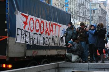 Um 16 Uhr war es soweit: Schätzungsweise 5000 Demonstranten setzten sich Richtung Wiener Hofburg in Bewegung. Zuvor waren sie von etlichen Rednern in mehr als zehn Sprachen auf einen lautstarken und tanzbaren Protestzug eingestimmt worden.