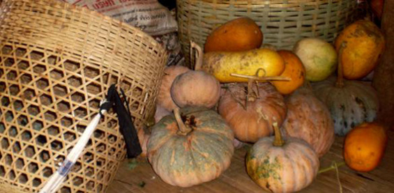 In der Schöpfungsgeschichte der Khmu - ein Volk im Hochland von Laos - krabbeln die ersten Menschen aus einem Kürbis. Sie kommen durch ein Loch, das ihre mythische Mutter mit einem feurigem Eisen in die Frucht gebrannt hat.