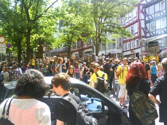 So haben sie die Studiengebühren abgeschafft. So machen sie weiter: Sie besetzen Autobahnen. Marburg ist dafür berüchtigt. Das bleibt nach dieser Bildungsstreik-Demo auch so. Nur jetzt “überfallen” sie sogar Banken.