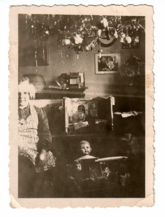 Ein Weihnachtsbaum wird sinnlos mit Lametta behangen. So ist es Brauch. Praktisch sind diese Baumständer, um sie auf dem Boden zu installieren. In den 1930er und 1940er Jahren war es Brauch, die Weihnachtsbäume an die Decke zu hängen.