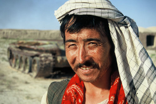 Afghane an einer der unzähligen früheren Frontlinien; hier bei der historischen Stadt Balkh in Nordafghanistan unweit des Oxus und der usbekischen Grenze. Afghanistan 2004