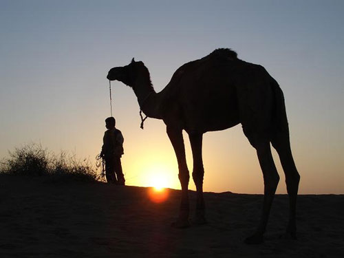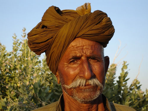 Ziegenhirte in der Wüste bei Jaisalmer, Rajasthan