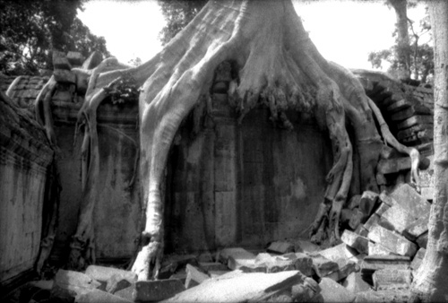 Wie die Natur durch von Menschen gestaltetes Terrain wildert, durch Orte streift, die über Jahre und Jahrhunderte in Vergessenheit gerieten... in Angkor Wat und in Champassak waren die Spuren von menschlicher Zivilisation schon im Unterholz verschwunden. In Weimar hat schleichend eine Graswurzelrevolution eingesetzt. Woanders können die großen Vorbilder schon seit langer Zeit Wurzeln schlagen.