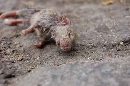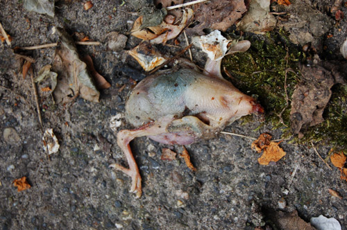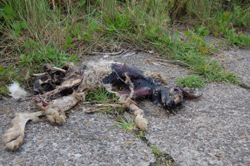 Die Leichen der Tiere haben das alles und sind wahrhaftig, auch eine Rarität in dem, was einem im Leben jeden Tag als Mensch begegnet. In meinen Bildern versuche ich die Schönheit, die jedem Tod innewohnt zu sehen und festzuhalten. Die Leichen der Tiere haben, egal wie plötzlich und/oder grausam sie vielleicht gestorben sind Ruhe. Sie verabschieden sich langsam von der Welt, im Idealfall durch Verwesung. So schließt sich ganz nebenbei auch wieder der natürliche, wertneutrale Kreis, wenn das verweste Fleisch irgendetwas in der Natur nährt, obwohl es eventuell durch Menschenhand unabsichtlich und ohne Grund gestorben ist.