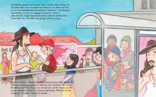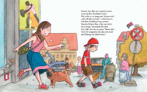 Yannik, der alles mit angehört hatte, verstand den Tanzlehrer nicht. Wie sollte er zu jung zum Tanzen sein! "Ich will aber tanzen", schluchzte er. Auf dem Nachhauseweg tröstete Yanniks Mutter ihn: "Das war nicht die richtige Tanzschule für dich. Ich weiß, dass du ein guter Tänzer bist. Und ich verspreche dir, dass wir noch das Richtige für dich finden."