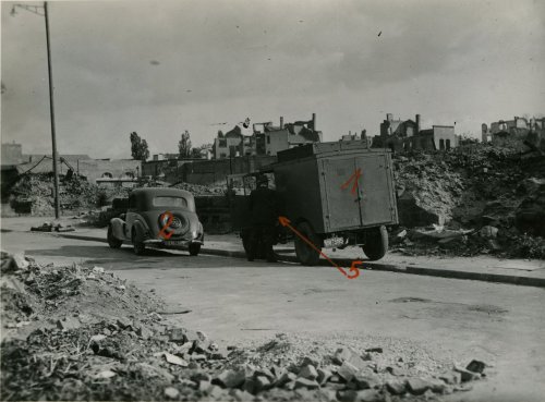 Überfall auf einen Geldtransporter, Mannheim (L-Quadrate) s/w Fotografie späte 1940er Jahre (c) Polizeipräsidium Mannheim