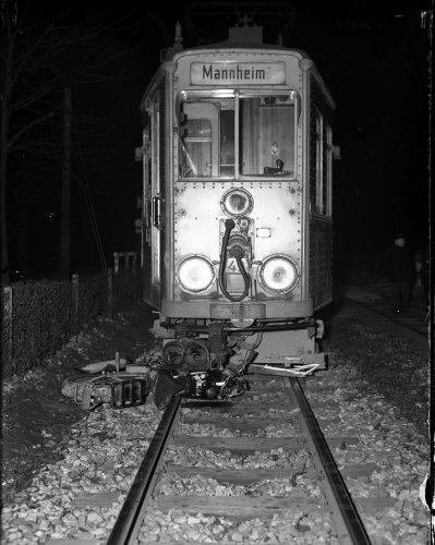 Straßenbahnunfall, Mannheim s/w Fotografie frühe 1950er Jahre (c) Polizeipräsidium Mannheim