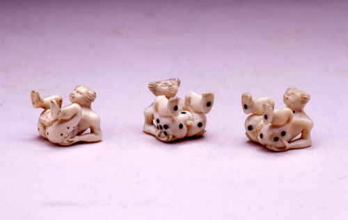 drei Figurenwürfel aus Bein, 17. Jh., Germanisches Nationalmuseum Nürnberg