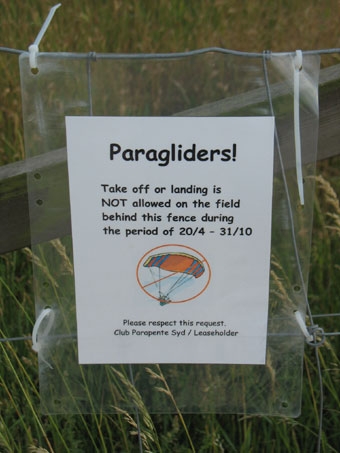 Dieses Landeverbot für Paraglider in Südschweden kann man aus der Luft nur mit Adleraugen lesen