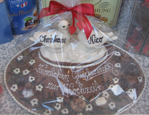 Süße Botschaft in Zuckerschrift, Schaufenster in Zittau, Sachsen