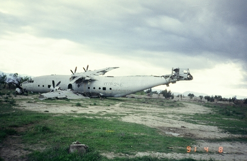 Symbolisch für den Untergang des Sowjetsystems: Die viermotorige sowjetische Transportmaschine vom Typ An12, die auch die Heckkanzel nicht retten konnte.