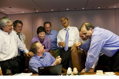 Oct. 14, 2009 "The President appears in deep thought as he and senior advisor David Axelrod listen during a climate change meeting in the Roosevelt Room of the White House. A moment later, he was laughing at a humorous exchange."