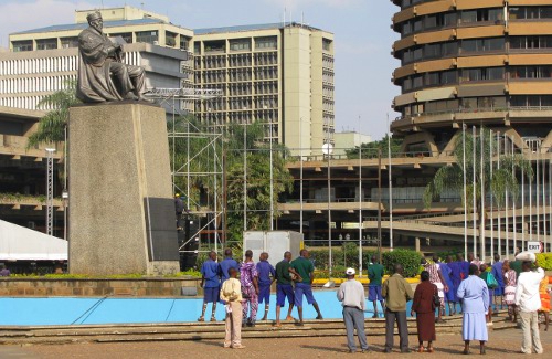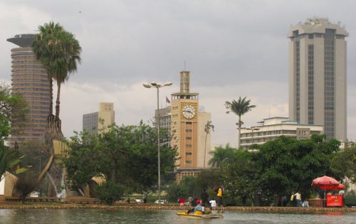 Blick auf das Parlamentsgebäude, dahinter der Uhuru-Park