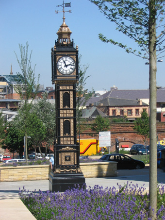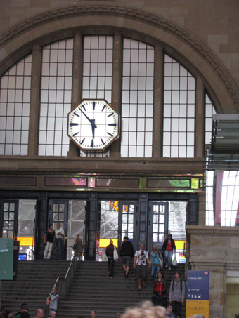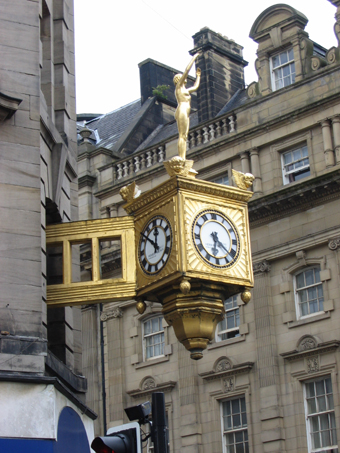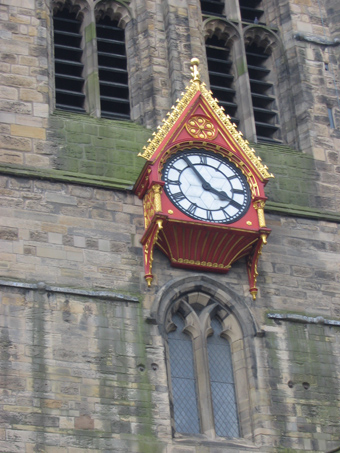 da hilft nur der alte Spruch "Mach es wie die Sonnenuhr, zähl' die schönen Stunden nur." ![]() Sehr hilfreich ist in jeder Bahnhofshalle eine weithin sichtbare Uhr, hier im Leipziger Hauptbahnhof ![]() Totale Verwirrung - Auch die beiden nicht sichtbaren Zifferblätter zeigen jedes eine andere Uhrzeit an, gesehen in Newcastle ![]() Diese "Kuckucksuhr" ohne Kuckuck hängt an der Kirche St. Nicholas in Newcastle ![]() Nicht nur mit Glocken kann man vermelden, was die Stunde geschlagen hat.