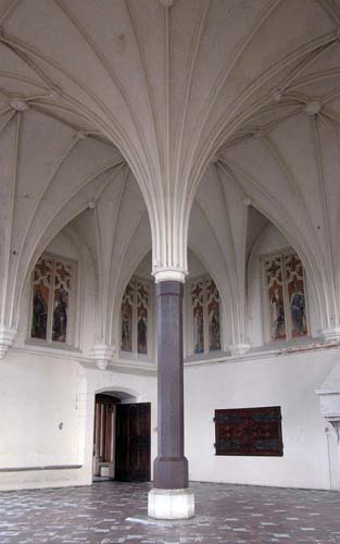 Die alleinstehende oktogonale Säule hält das gesamte Gewölbe des Prachtsaals.