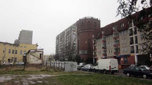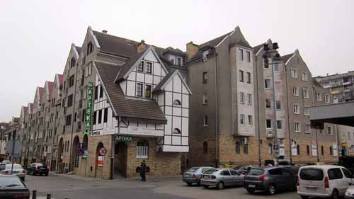 Architekturmischung in Kolberg: Platte neben Backstein.