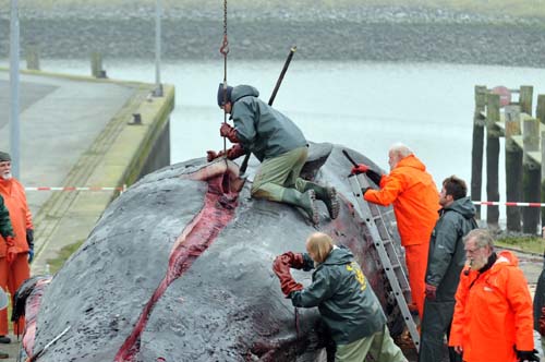 Dann wird dem Wal die dicke Speckschicht abgezogen. (Foto: Etzkorn/LWL)