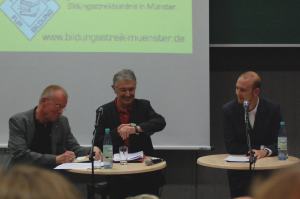 Das Bildungsstreik-Bündnis Münster hat drei Monate nach der Großdemonstration eine Podiumsdiskussion mit zwei Bundestagsabgeordneten veranstaltet. Thema: Turboabi und Bologna – vom Sinn und Zweck der jüngsten Reformen im Bildungswesen.