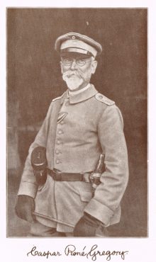 Der gebürtige US-Amerikaner Caspar René Gregory fiel im April des Jahres 1917 als ältester Kriegsfreiwilliger des Deutschen Reiches im Ersten Weltkrieg. 1881 hatte er die sächsische Staatsbürgerschaft erhalten. Fortan tat er sich als umtriebiger Theologieprofessor und als einer der ersten Nationalsozialen hervor.Demokratiehürde vor dem Fall